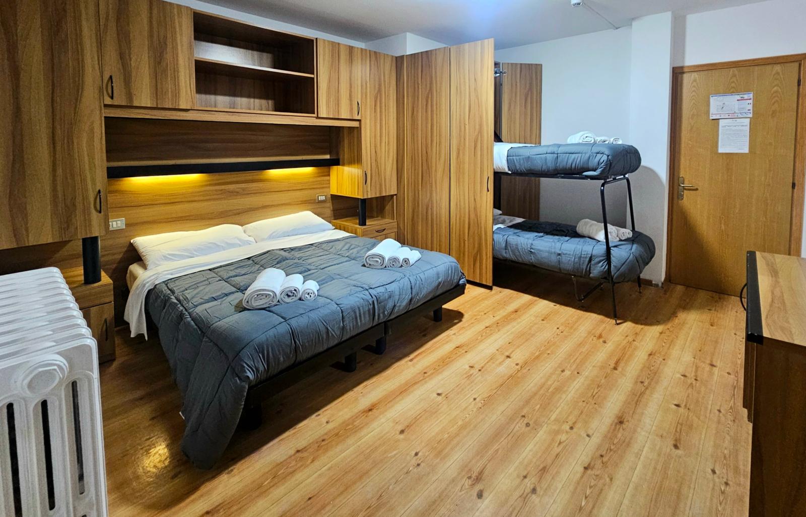 Composta da letto matrimoniale e un letto a castello.